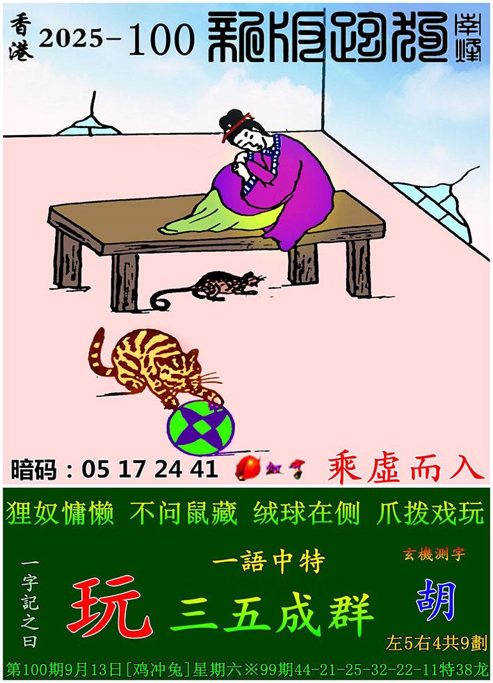 100期新版跑狗一字記之曰:【玩】 玄機測字:【胡】 一語中特:三五成群