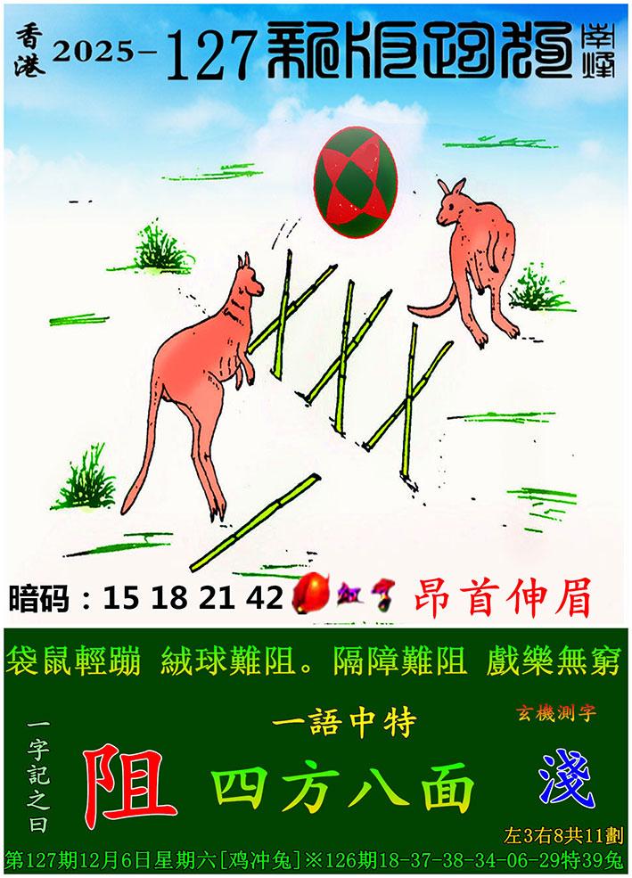 127期新版跑狗一字記之曰:【阻】 玄機測字:《淺》 一語中特:四方八面