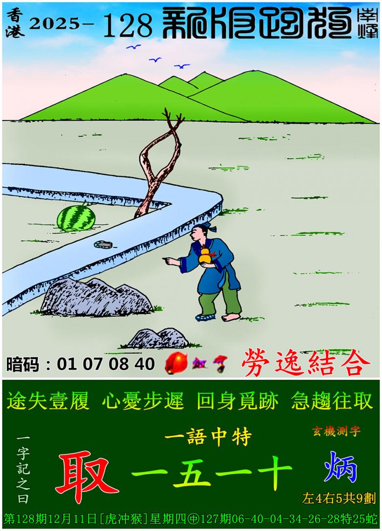 128期新版跑狗一字記之曰:【取】 玄機測字:《炳》 一語中特:一五一十