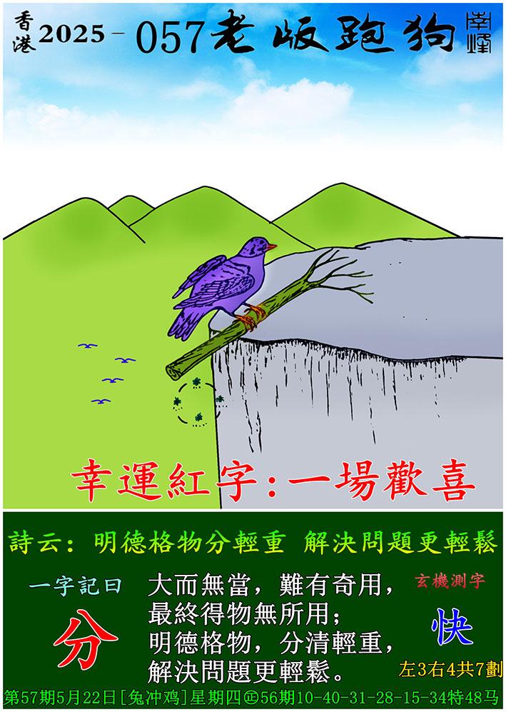 057期老版跑狗一字記之曰:【分】 詩雲:明德格物分輕重,解決問題更輕鬆。