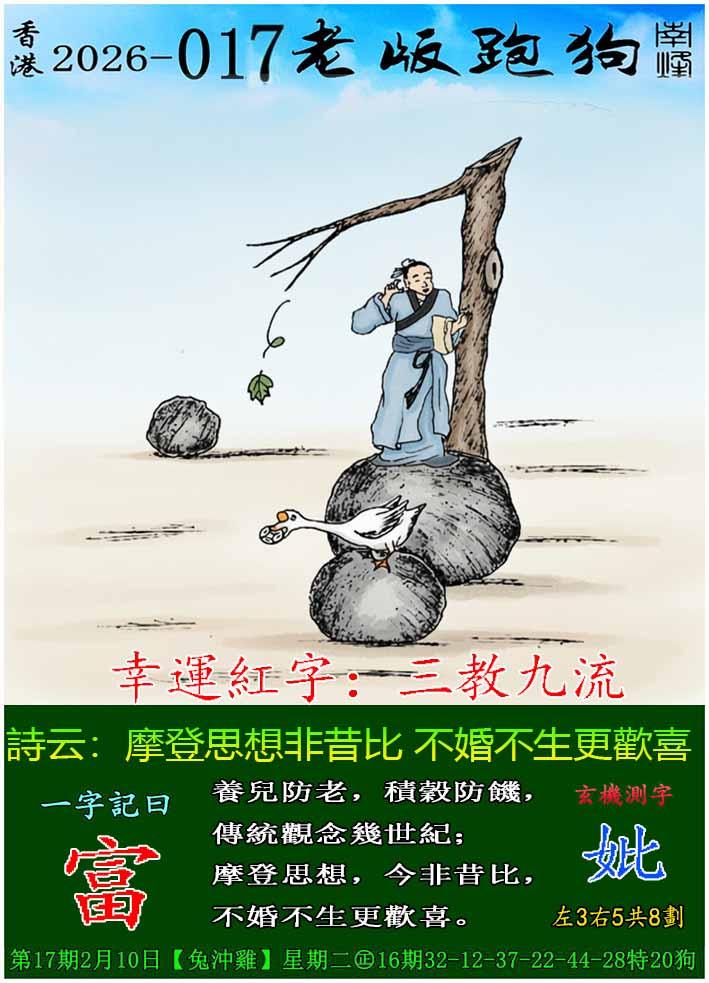 017期老版跑狗一字記之曰:【富】 詩雲:一朝富貴自有方,時來運到放光芒。