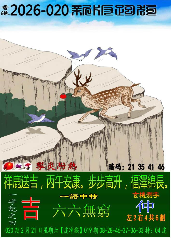 020期新版跑狗一字記之曰:【吉】 玄機測字:《仲》 一語中特:六六無窮