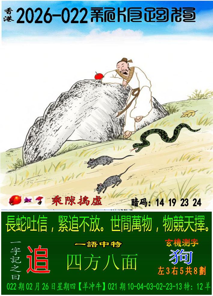 022期新版跑狗一字記之曰:【追】 玄機測字:《狗》 一語中特:四方八面