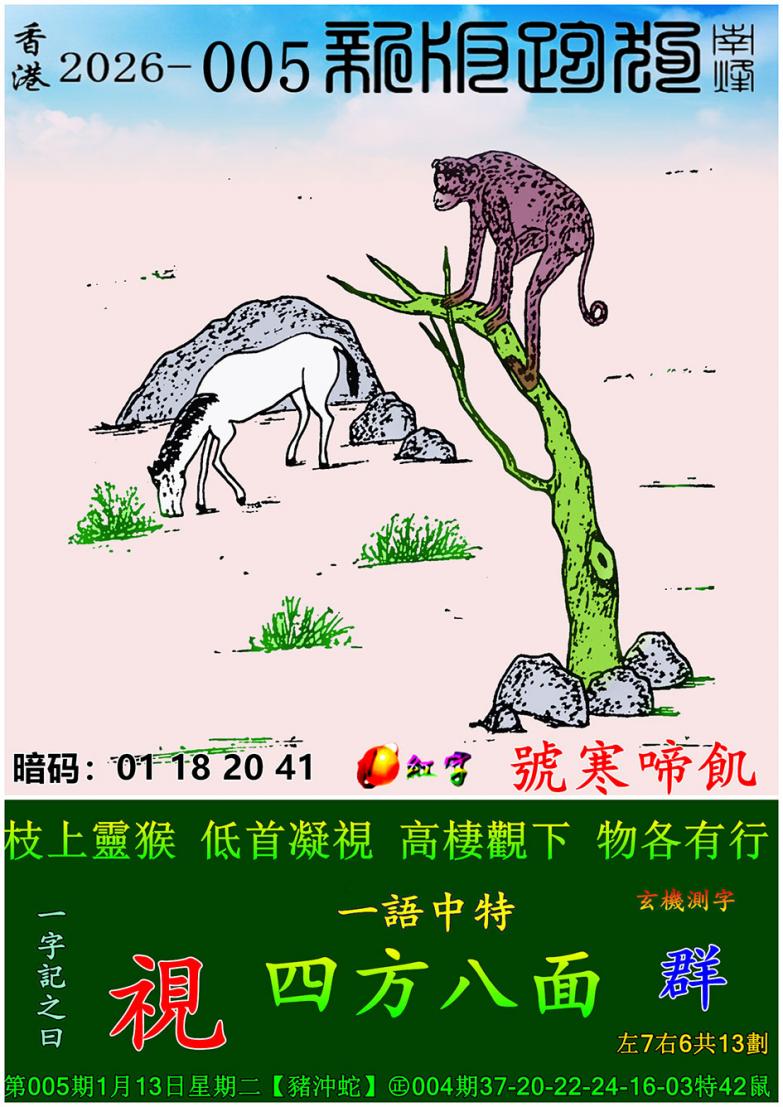 005期新版跑狗一字記之曰:【視】 玄機測字:《群》 一語中特: 四方八面