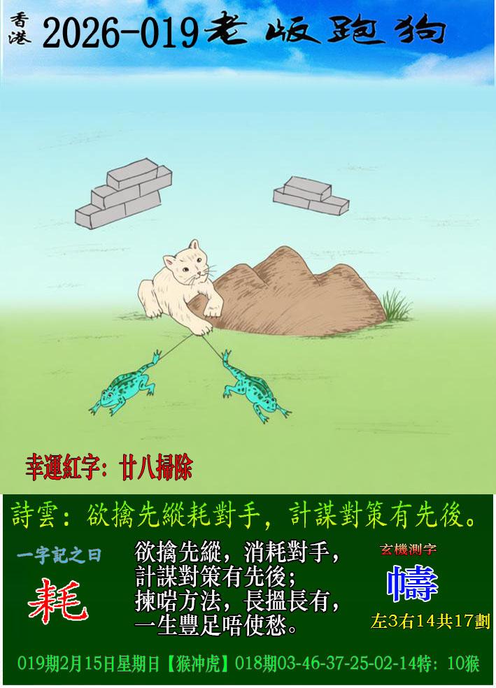 019期老版跑狗一字記之曰:【耗】 詩云:欲檎先縱耗對手,計謀對策有先後