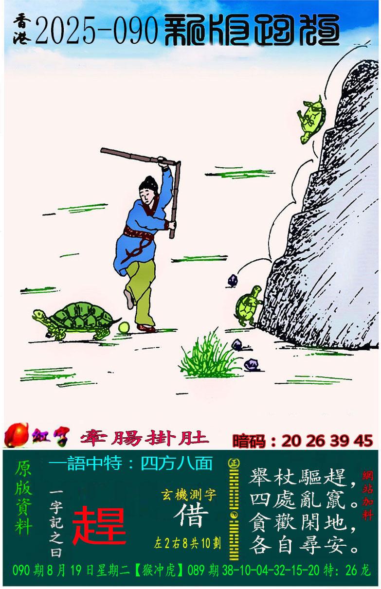 090期新版跑狗一字記之曰:【趕】 玄機測字:《借》 一語中特:四方八面