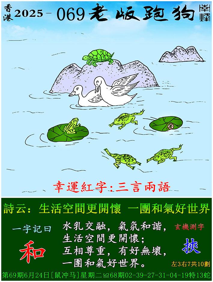 069期老版跑狗一字記之曰:【和】