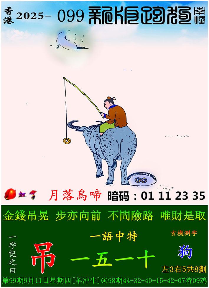099期跑狗一字記之曰:【吊】