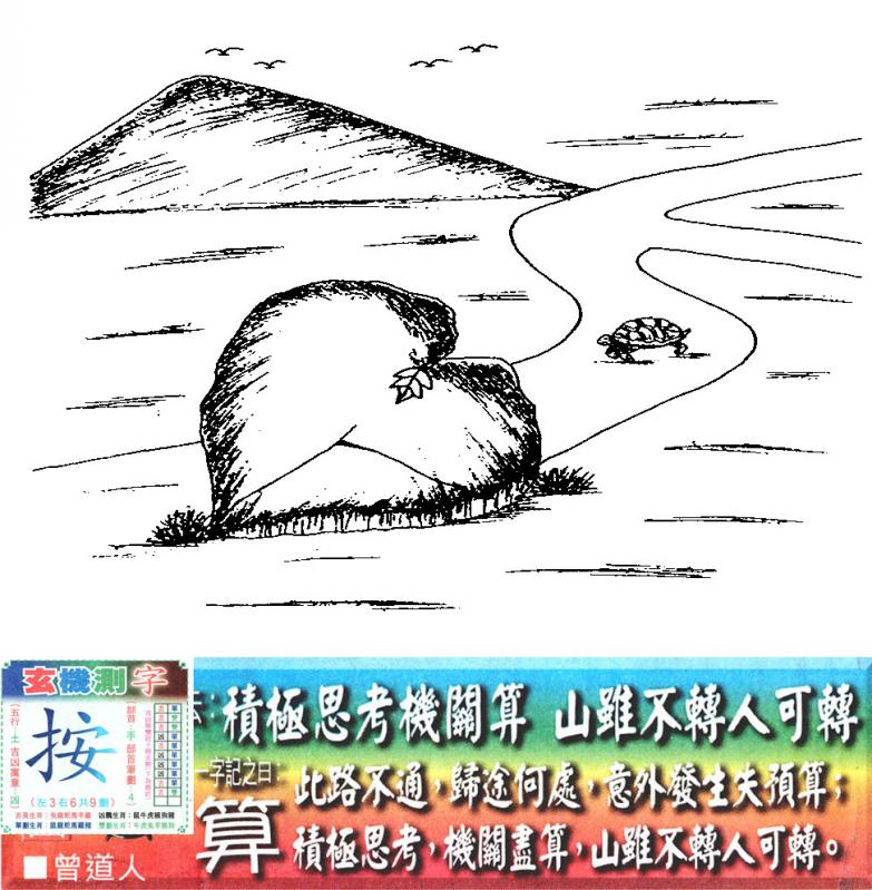 039期老版跑狗一字記之曰:【算】 玄機測字:《按》