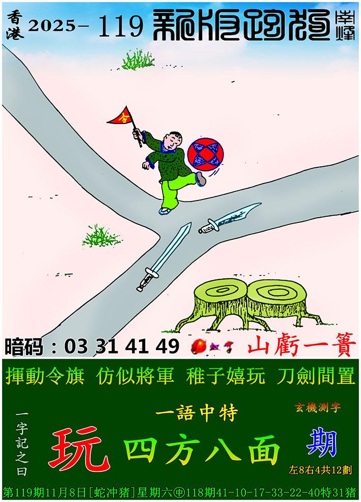 119期新版跑狗一字記之曰:【玩】玄機測字:《期》 一語中特:四方八面